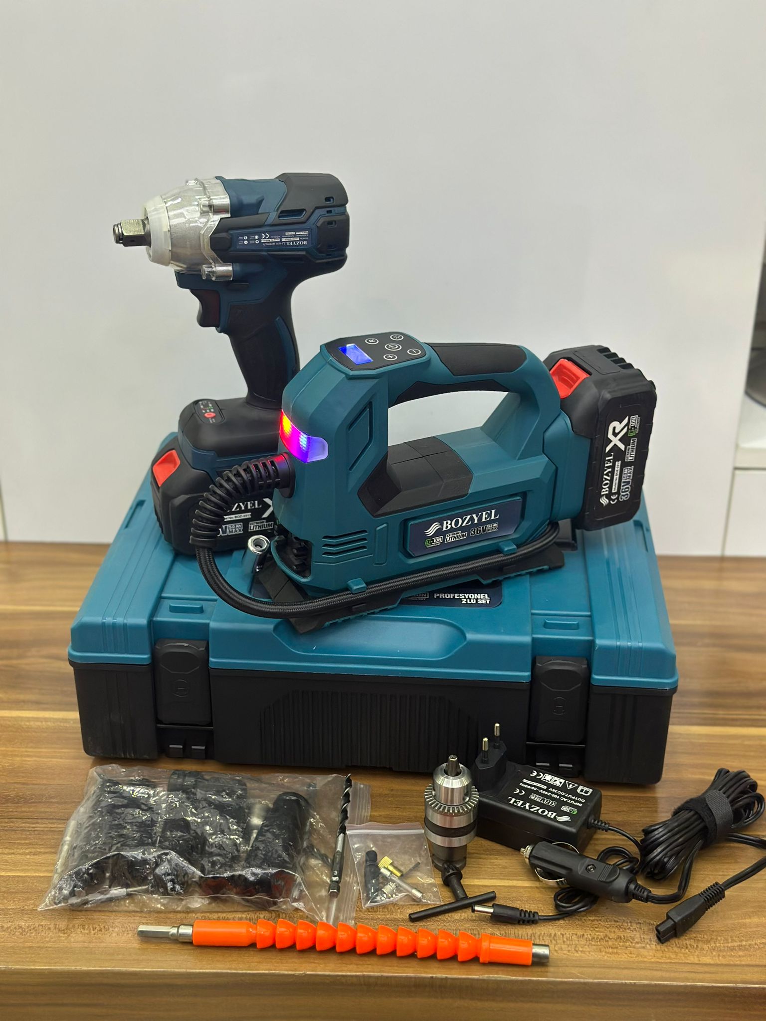 bozyel profesyonel ikili set 450 nm torklu matkap ve yüksek ps kompresör ile sizlerle