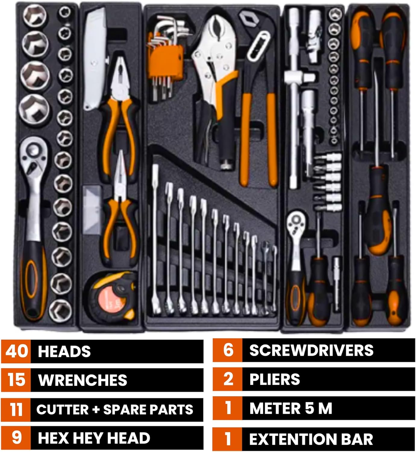 Katlanır 5 Gözlü Dolu Metal Takım Çantası – 81 Parça