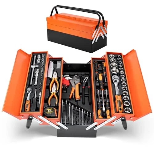 - Profesyonel 5 gözlü katlanır metal takım çantası.